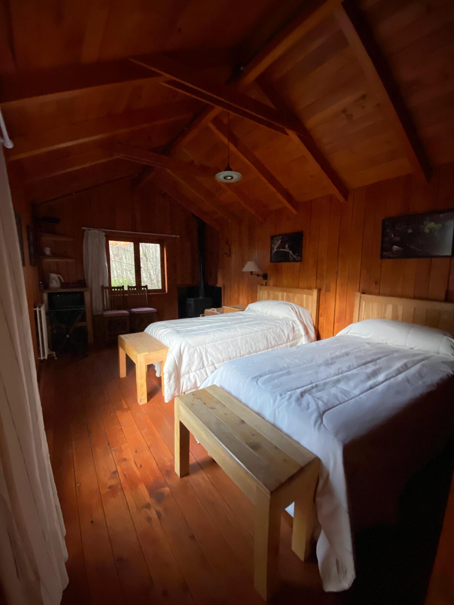 Una habitación para tres personas, un espacio de cocina-comedor y living con hogar a leña, un sillón cama, baño y amenities. Equipadas para que los huéspedes puedan llevar sus víveres y cocinar en el lugar. Calefacción a leña, ropa blanca y conexión a internet.